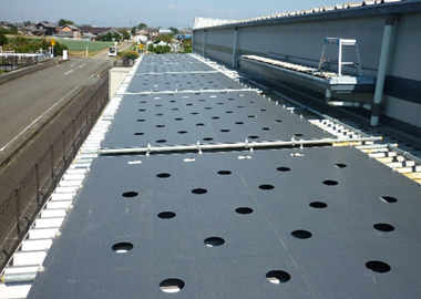 A thermal barrier coating was applied to the exterior walls and a “cooling roof” was installed on the roof. This saves electricity usage by blocking heat in summer, retaining heat in winter and increasing the efficiency of the air-conditioning.
